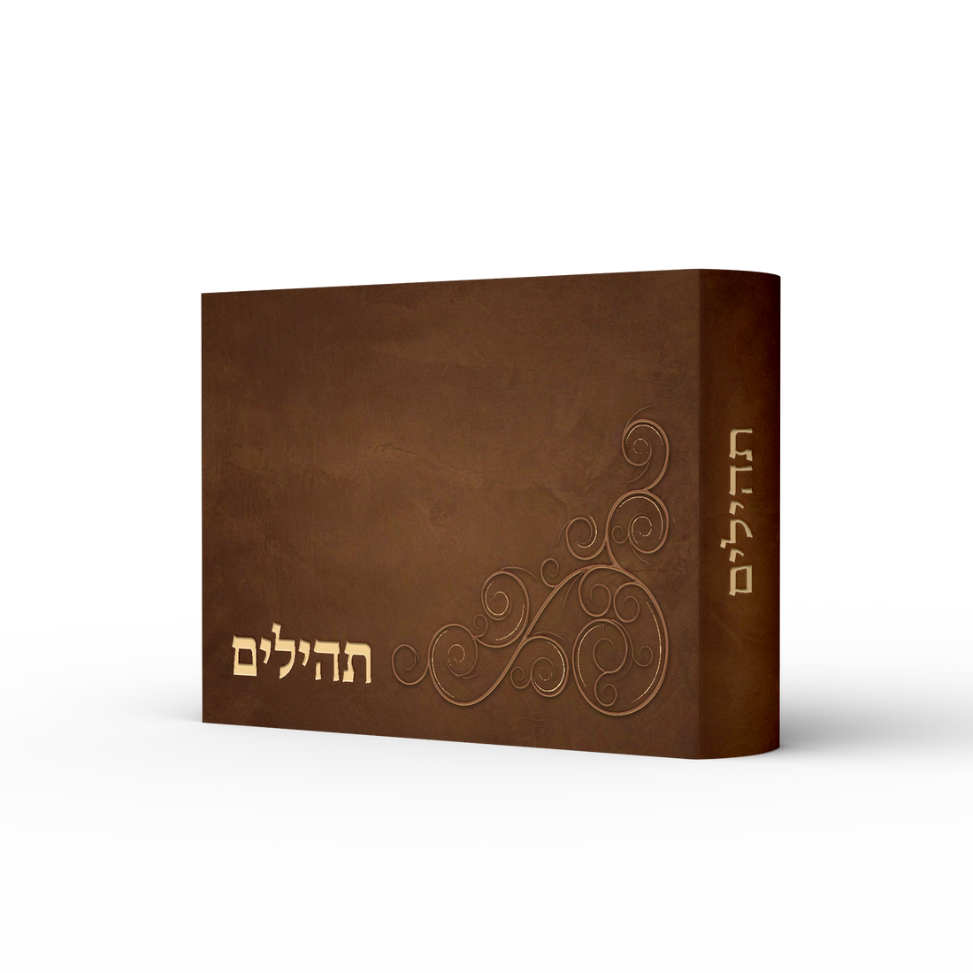 ספר תהילים קומפקטי בעיצוב חום עמוק וקלאסי, עם מראה עתיק, חמים ומכובד, המשדר איכות ואלגנטיות...