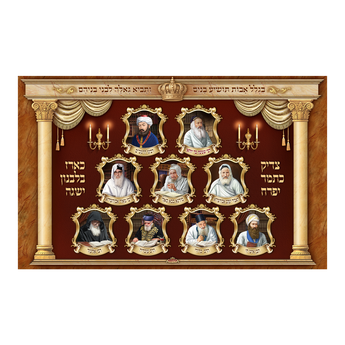 תמונת בד לסוכה – רבני ישראל קישוט מרשים לסוכה, המציג את דמויותיהם של רבני...