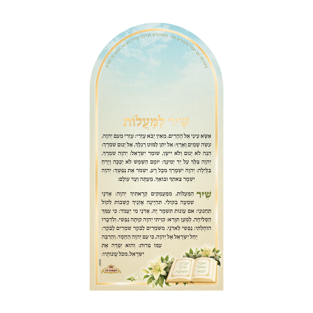 מגנט מעוצב עם נוסח שיר למעלות, בעיצוב פרחים קלאסי ועדין.מתאים להצבה על מקרר, דלת או...