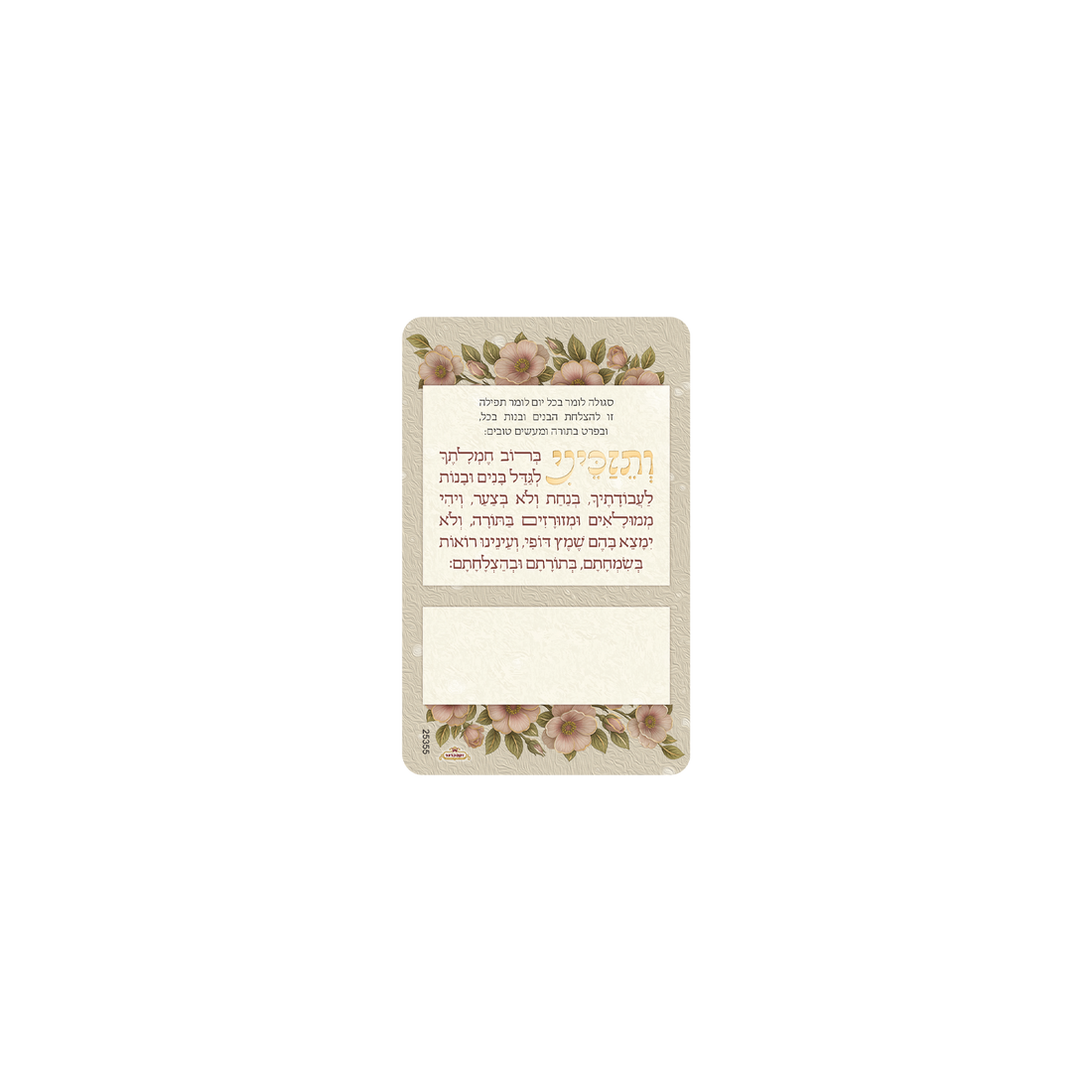 מגנט מעוצב עם תפילת ותזכיני – תפילה על הבנים והבנות, בעיצוב פרחים בגווני חום קלאסיים...