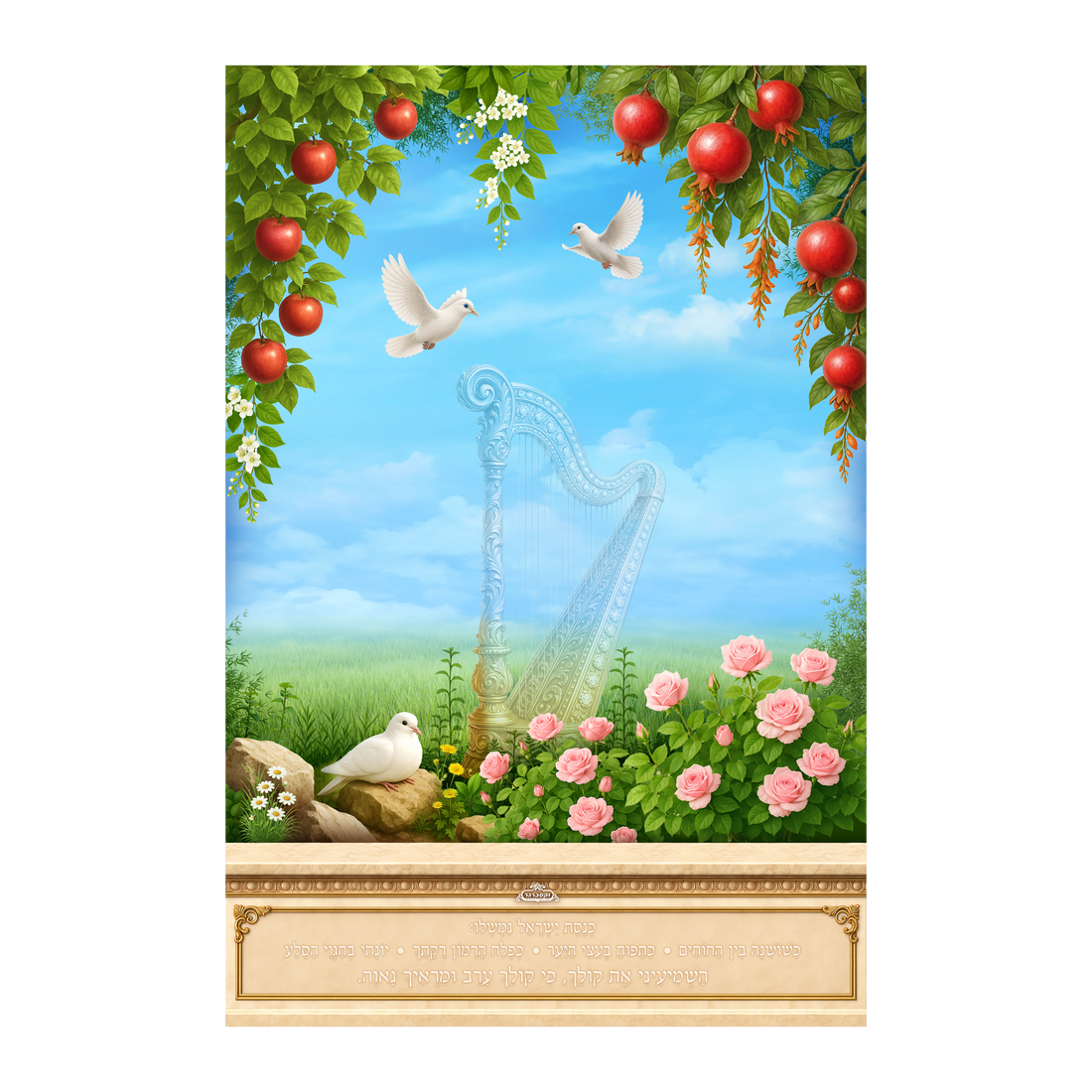 צירת אמנות מרהיבה ומלאת הוד, המשדרת יופי, קדושה ורוחניות – מושלמת לסוכה מפוארת. במרכז התמונה...