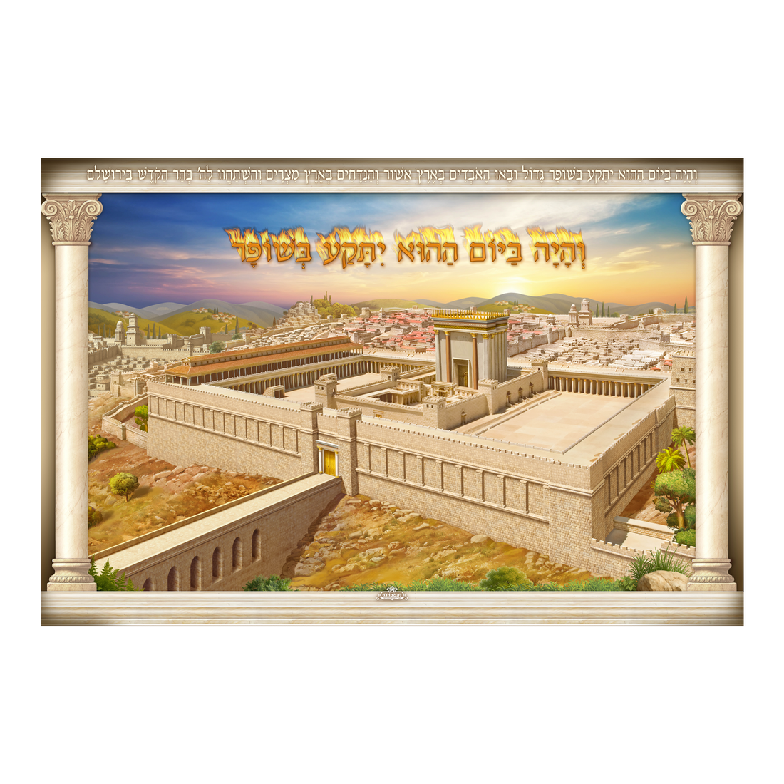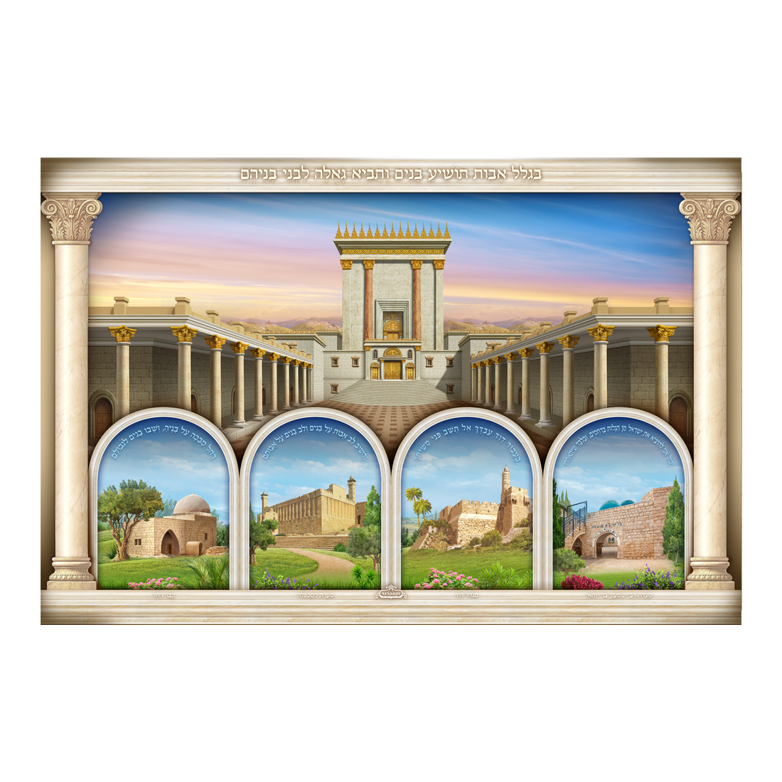 צירה מרהיבה וענקית, המשלבת בין בית המקדש המפואר לבין ארבעת המקומות הקדושים לעם ישראל: קבר...