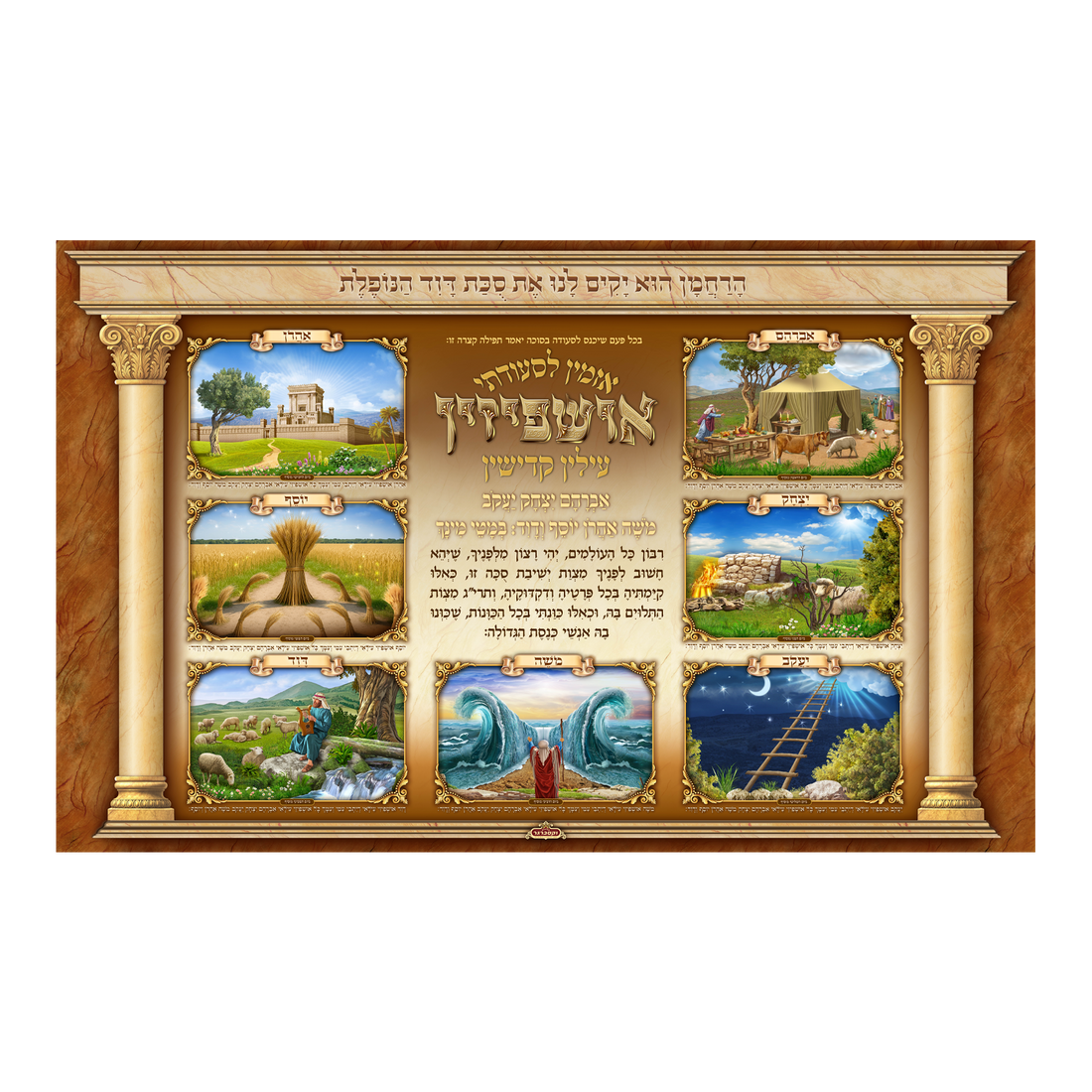 יצירה ייחודית ועשירה בפרטים, המכניסה לסוכה את אווירת הקדושה של האושפיזין – האורחים הרוחניים המלווים...