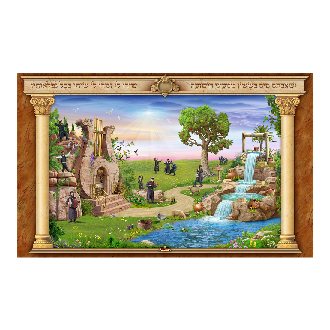צירת אמנות מרהיבה ומלאת הוד, המשדרת יופי, קדושה ורוחניות – מושלמת לסוכה מפוארת. במרכז התמונה...