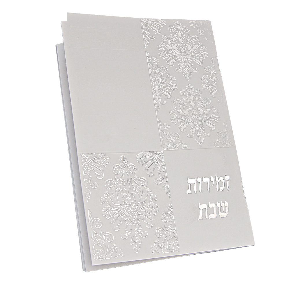 זמירות שבת עם שירים ופזמונים - דגם קארט - סגנון קלאסי רקע לבן עם הבלטות בצבעישחור זהב כסף