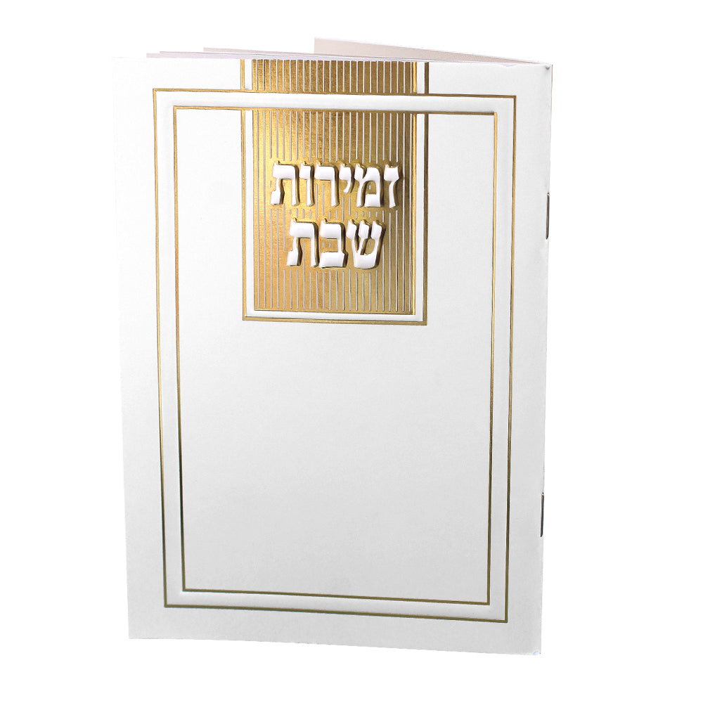זמירות שבת עם שירים ופזמונים - דגם קארט - סגנון קלאסי רקע לבן עם הבלטות בצבעישחור זהב כסף