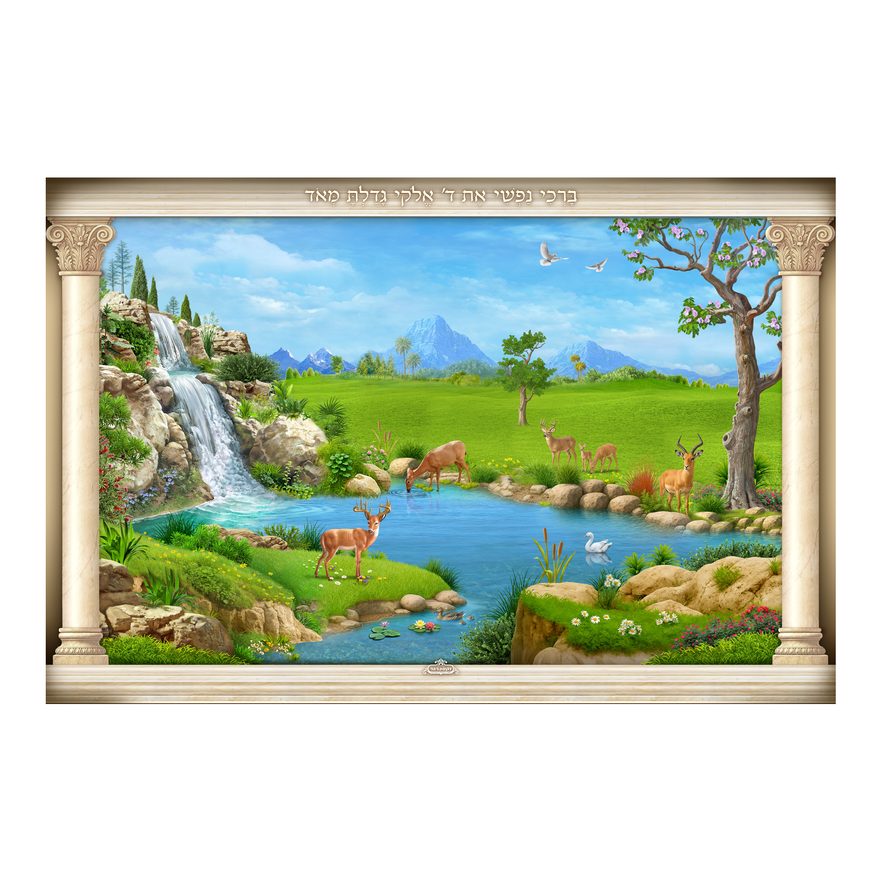 יצירת טבע עוצרת נשימה הממחישה את הפסוק "ברכי נפשי את ה' אלוקי גדלת מאד". ציור מרהיב ועשיר בפרטים, המעניק תחושת שלווה, רעננות והתחדשות – שילוב מושלם של אמנות וקדושה.