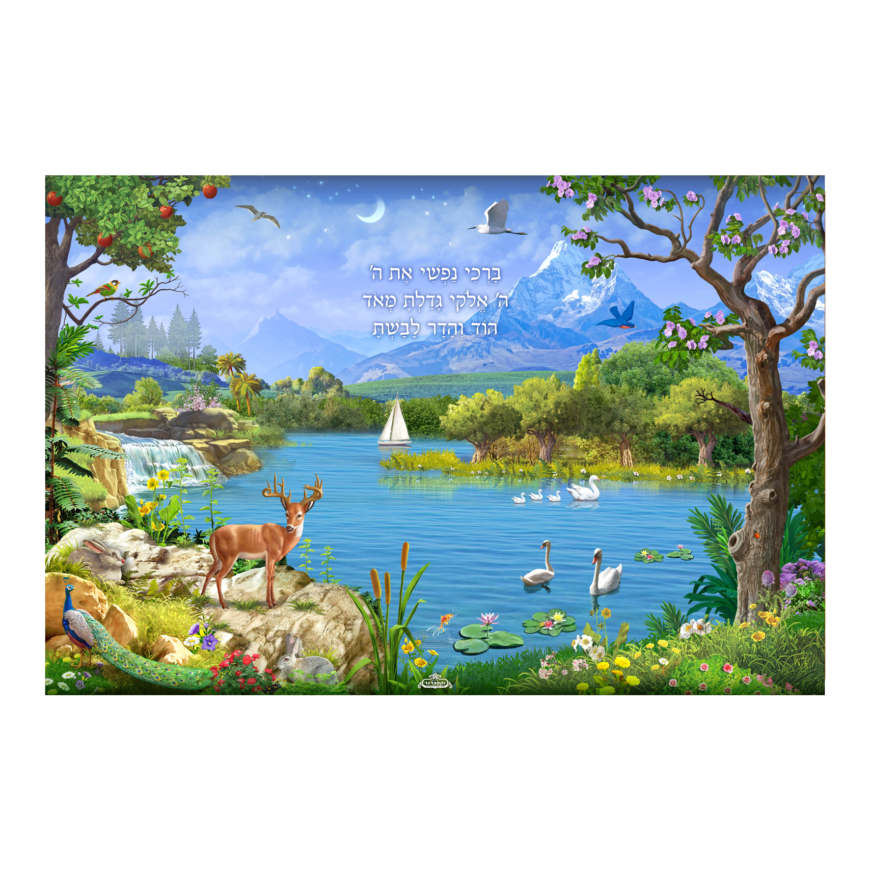 יצירה אמנותית מרהיבה המתארת את פסוקי "ברכי נפשי את ה' – ה' אלוקי גדלת מאוד, הוד והדר לבשת". ציור טבע מלא חיים ועשיר בפרטים המעניק אווירה של שלווה, יופי וקדושה.