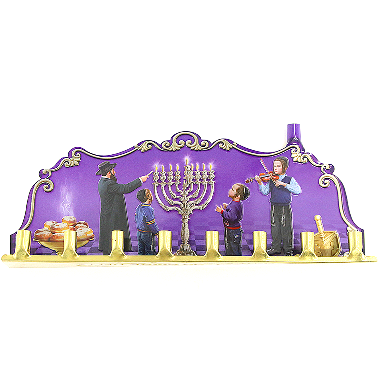 עשויה מאלומיניום קל ומשובח, עם הדפס צבעוני מרהיב שמכניס שמחת חג אמיתית. החנוכייה מיועדת להדלקת נרות בלבד (לא מתאימה לשמן), ומאפשרת לילדים להרגיש חלק מטקס ההדלקה – בצורה נוחה, צבעונית ומרגשת.