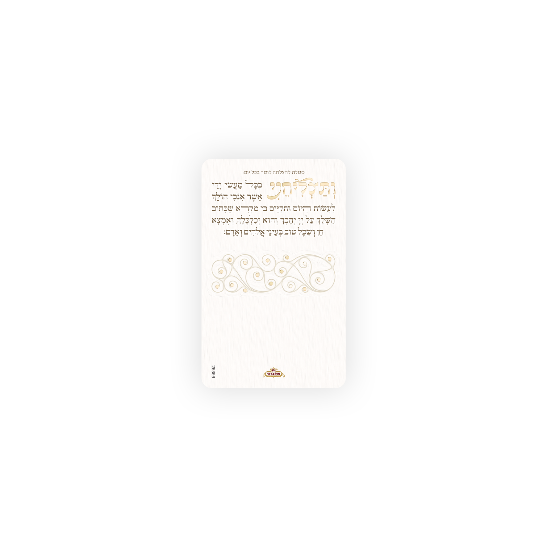מגנט מעוצב עם תפילת ותצליחינו – תפילה לבקשת הצלחה, בעיצוב לבן נקי ואלגנטי בסגנון “לבן גן עדן”.