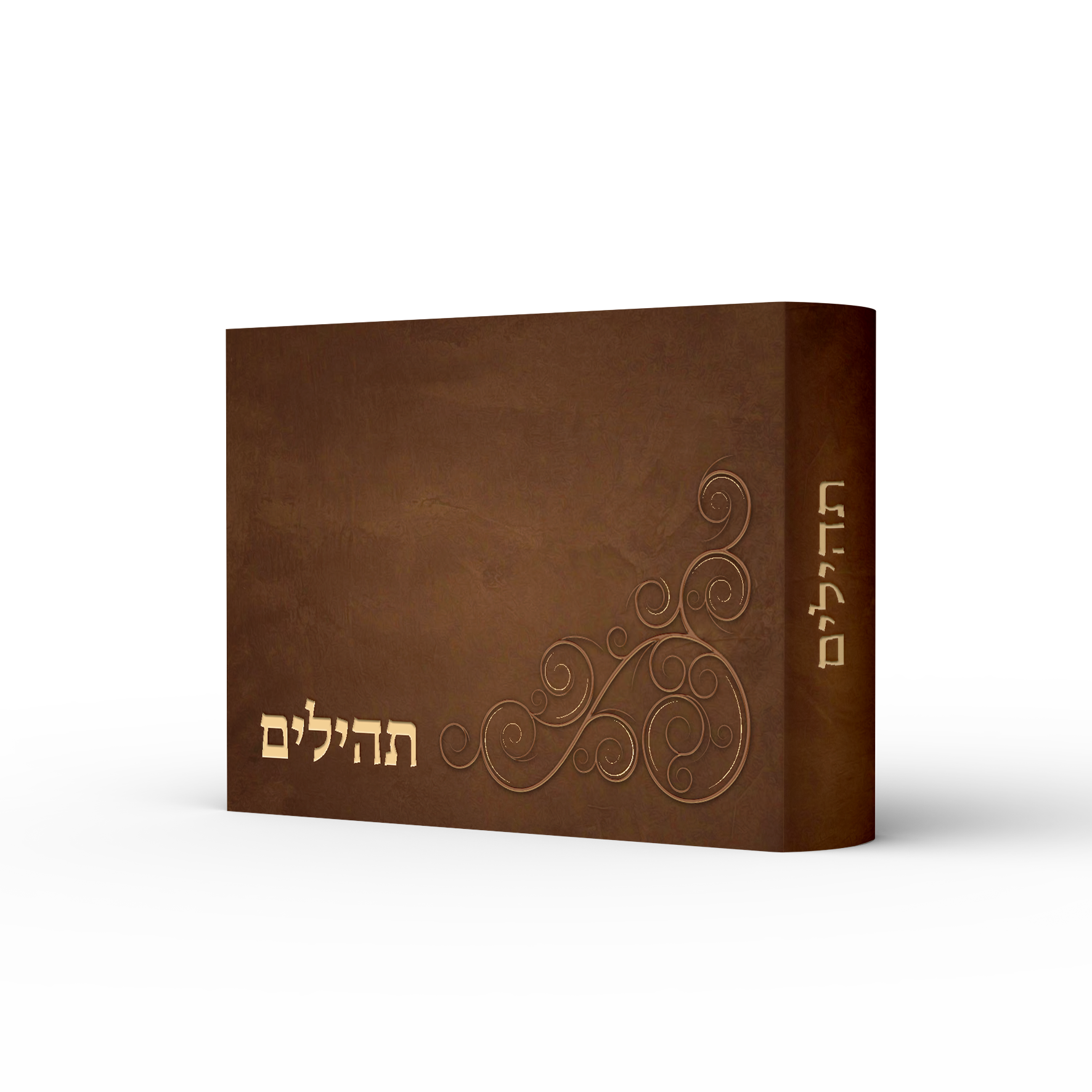 ספר תהילים קומפקטי בעיצוב חום עמוק וקלאסי, עם מראה עתיק, חמים ומכובד, המשדר איכות ואלגנטיות שקטה.