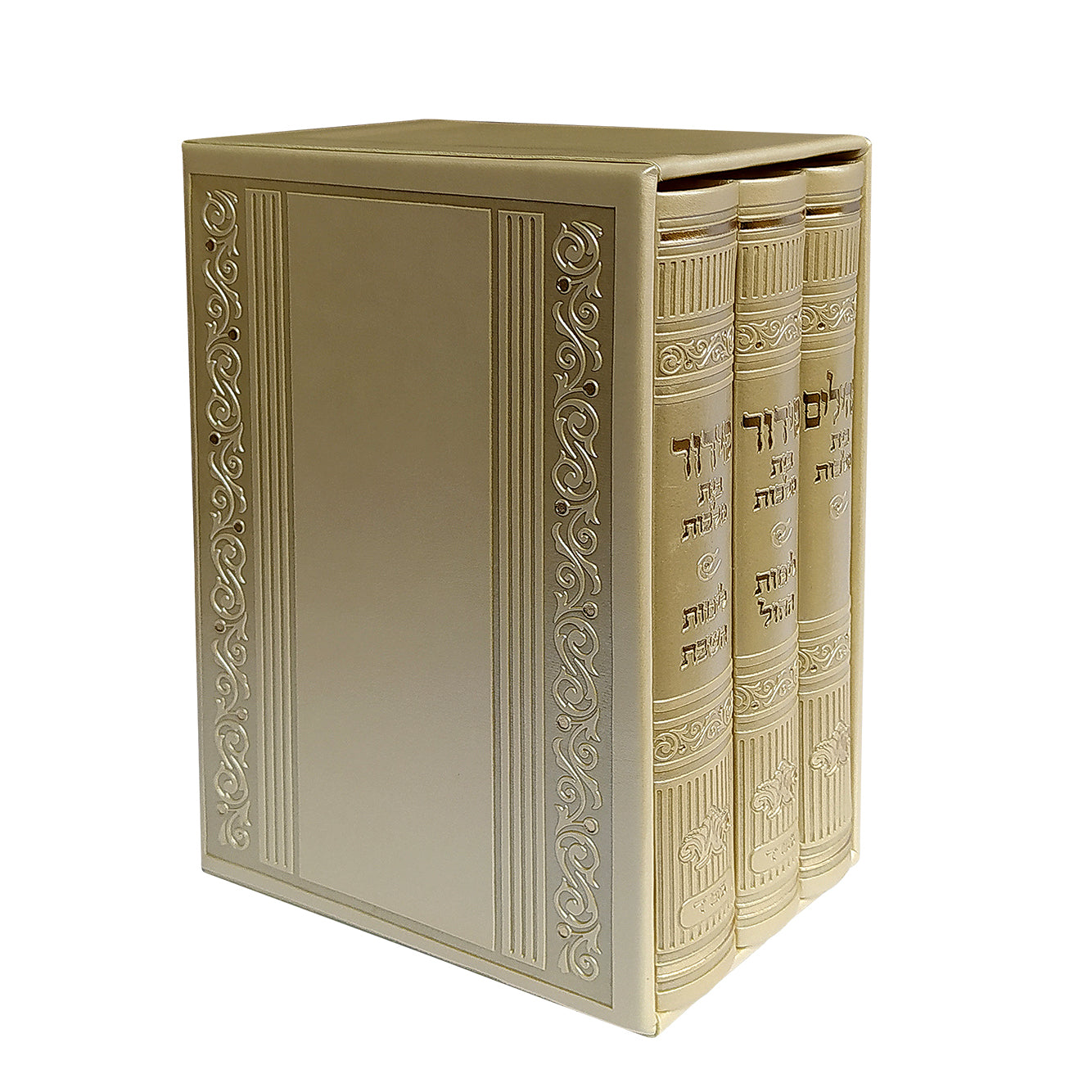 סט מהודר של סידורי תפילה לחול ולשבת ותהילים, בעיצוב אלגנטי וחדשני. כולל נוסח מוקפד עם עימוד נוח לקריאה ושימוש יומיומי.
