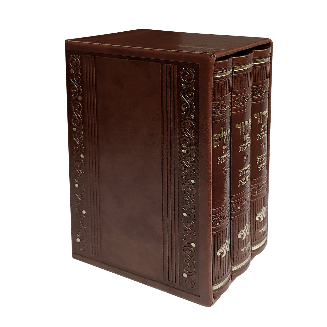 הסט מגיע בכריכה מעוצבת ומרשימה בשני צבעים קלאסיים: חום ובז’, להשתלבות מושלמת עם כל סגנון. שילוב של יופי, נוחות וקדושה לכל בית יהודי ולמתנה ייחודית.